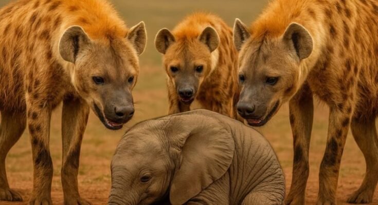 Just as the hyenas prepared to strike, “the ground shook under even heavier footsteps.”