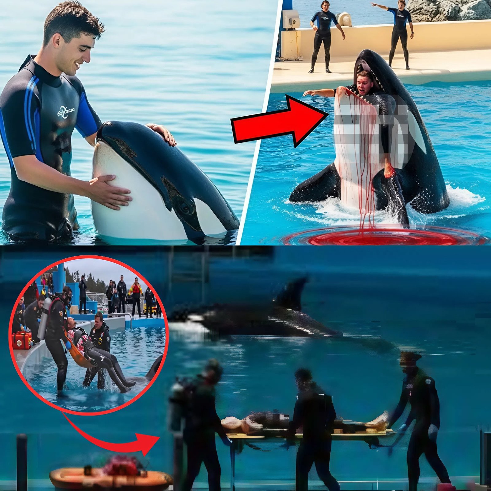 The show had been proceeding smoothly. Families filled the stands, children laughed, and cameras rolled. Titan leapt through hoops, splashed the front rows, and responded to Marston’s cues with precision. As the performance neared its grand finale, Zayne swam alongside Titan in the massive tank. Then, in a moment that was meant to be symbolic of trust between man and beast, Zayne extended his hand toward the orca’s pectoral fin. Spectators later described the moment as almost cinematic—until the sudden shift in Titan’s behavior turned awe into horror.