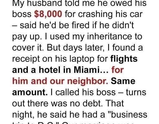Soon after, she found a confirmation email for Miami flights—two tickets, one in Mike’s name, the other for their neighbor, Sarah. The cost matched the $8,000. A call to Mike’s boss confirmed her worst fear: “There had never been an accident.”