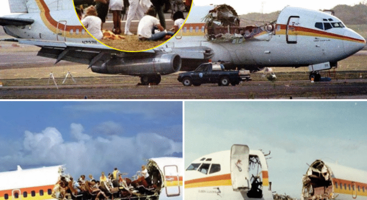 The pilots, faced with an almost unimaginable crisis, demonstrated extraordinary skill and composure. With the aircraft’s structural integrity compromised and the cabin exposed to the elements, they initiated an emergency descent to a lower altitude where passengers could breathe without supplemental oxygen. The deafening roar of the wind and the structural strain on the plane made communication difficult, yet the crew maintained control, navigating through turbulent conditions. Air traffic controllers were alerted, and emergency protocols were activated on the ground as the plane made its way to the nearest suitable airport. The passengers, many of whom believed their lives were nearing an end, held on to hope as the pilots executed a series of maneuvers to stabilize the aircraft. After what must have felt like an eternity, Flight Aloha 243 touched down safely, a testament to the crew’s training and resilience.
