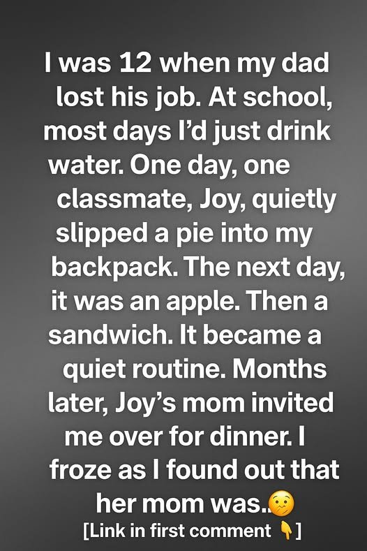 Joy’s mom smiled gently: “I didn’t want you to go hungry.” The narrator realized those meals were not chance, but compassion—simple kindness offered quietly, without recognition.