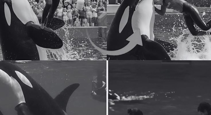 Witnesses describe an atmosphere that shifted from delight to disbelief in a matter of seconds. Children sat frozen in their seats while parents instinctively pulled them closer, unable to process what was unfolding before their eyes. The orca, which had been performing synchronized jumps and playful spins only moments earlier, suddenly lunged toward the platform where trainer Jessica Radcliffe stood. Gasps and screams filled the air as the massive animal’s movement broke the surface with a force that could be felt even from the upper rows of the stadium. For a split second, silence fell, as if everyone was holding their breath. Then, chaos erupted. The horrifying moment was immortalized on countless phones, the shaky camera angles doing nothing to soften the brutality of what came next.